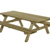 Deze robuuste picknicktafel met afmetingen van 180×160 cm biedt ruim plaats aan zes personen. De oersterke constructie zorgt ervoor dat de picknicktafel geschikt is voor intensief en langdurig gebruik. Elk onderdeel wordt apart bewerkt en onder druk geïmpregneerd, wat resulteert in een splintervrije en duurzame afwerking. Bovendien worden alle onderdelen vanaf de onderkant dubbel geschroefd voor extra stevigheid. De picknicktafel biedt door de uitgebalanceerde verhoudingen optimaal zitcomfort. Ook is de picknicktafel voorzien van een parasolopening. Wordt gemaakt van Noord-Europees vurenhout, voorzien van het FSC®-keurmerk.