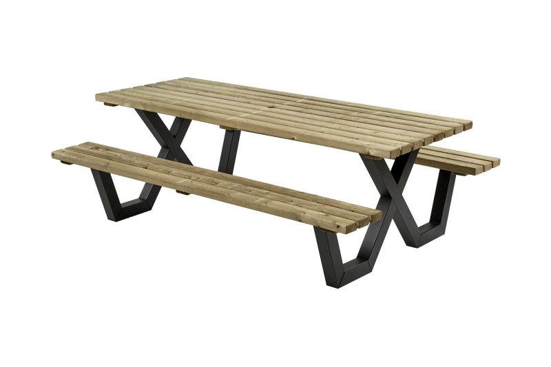Deze fantastische picknicktafel van 230 cm biedt een ultieme buitenervaring. Het gegalvaniseerde metalen frame, gepoedercoat en voorzien van glijdoppen, combineert uitstekend met het duurzame FSC®-gecertificeerde Noord-Europese naaldhout. De zorgvuldige afwerking met geschuurde uiteinden en schroeven vanaf de onderzijde, garandeert een comfortabel gebruik. Het hout heeft een rustige houtnerfstructuur met kleine ronde noesten. Ervaar stijl en duurzaamheid in de buitenlucht met deze prachtige picknicktafel.