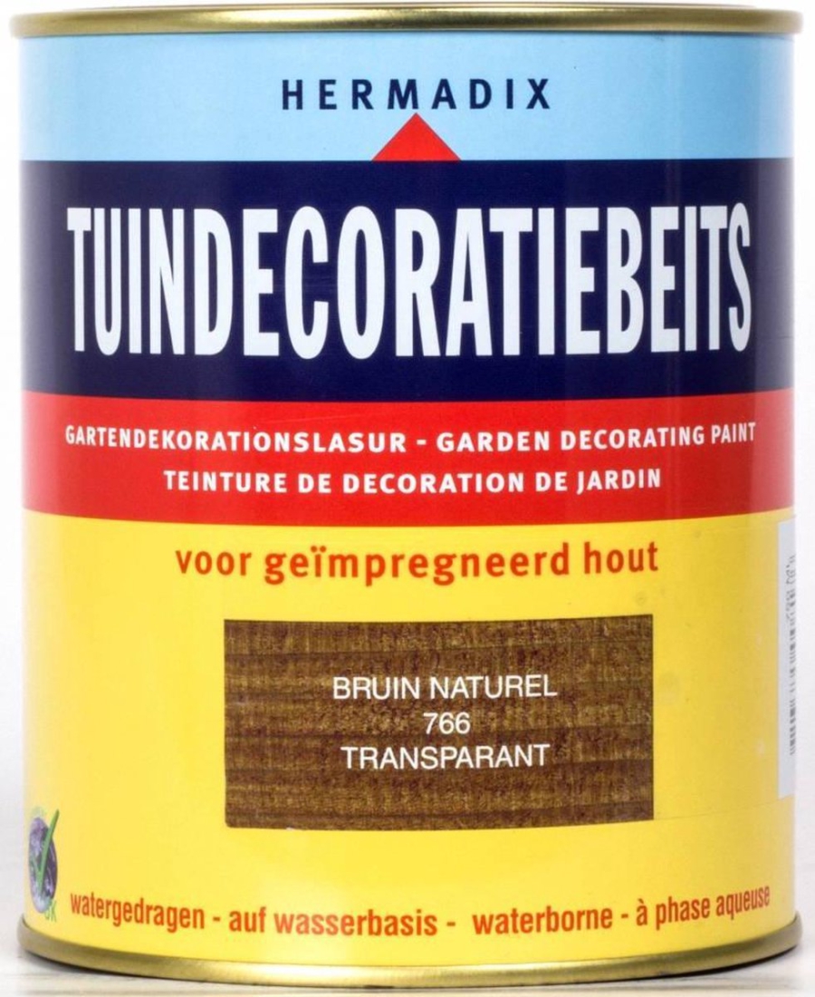 Nieuw geïmpregneerd tuinhout heeft een fabrieksmatige behandeling ondergaan. De speciale samenstelling van Tuindecoratiebeits is naadloos afgestemd op deze behandeling. Hierdoor kunt u uw tuinhout makkelijke en snel beitsen. Bij onderhoudslagen hoeft niet geschuurd te worden. Tuindecoratiebeits is makkelijk te verwerken en sneldrogend. Een mens- en milieuvriendelijk product dat vervuiling en vergrijzing tegengaat en geen nare verflucht heeft.